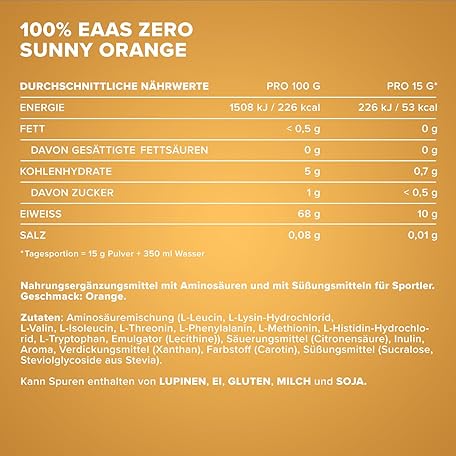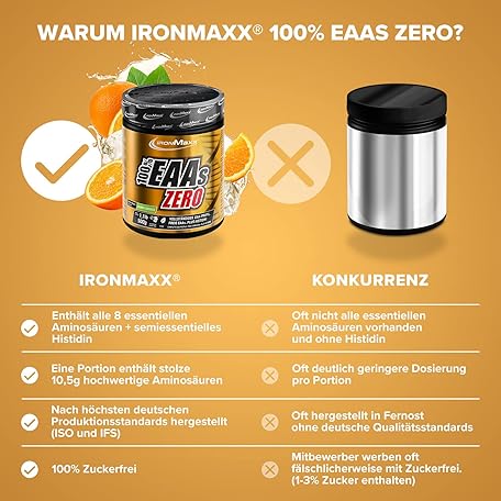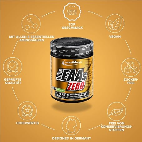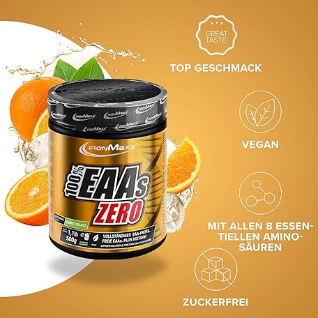 Thông tin sản phẩm IronMaxx 100 Percent EAAs Zero Amino Acid Powder, Sugar-Free, Sunny Orange Flavour, 500 g Tub (Pack of 1)
