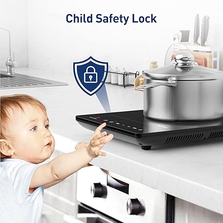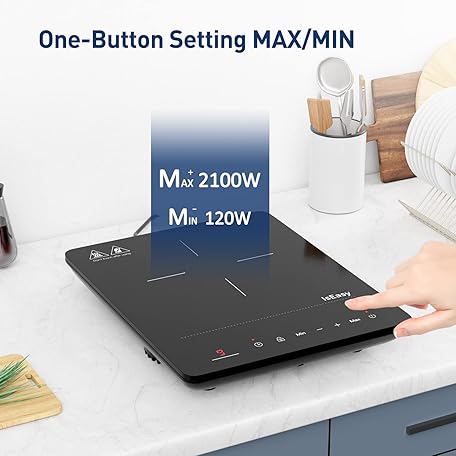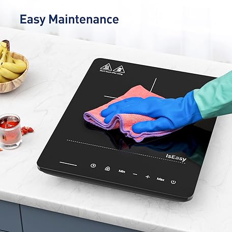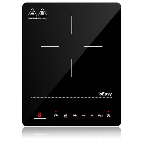 Thông tin sản phẩm IsEasy Induction Hob 1 Plate, Single Induction Hob 2100 W, 28 cm Hot Plate, Portable with Child Lock, 9 Heat Settings, 8 Hour Timer, Max/Min Function, Black