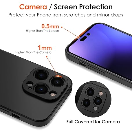 Thông tin sản phẩm ivoler Silicone Case for iPhone 14 Pro Max 6.7 Inch with Camera Protection, Ultra Thin Soft Shockproof Protective Case Flexible TPU Matte Black Mobile Phone Case Scratch-Resistant Case Cover