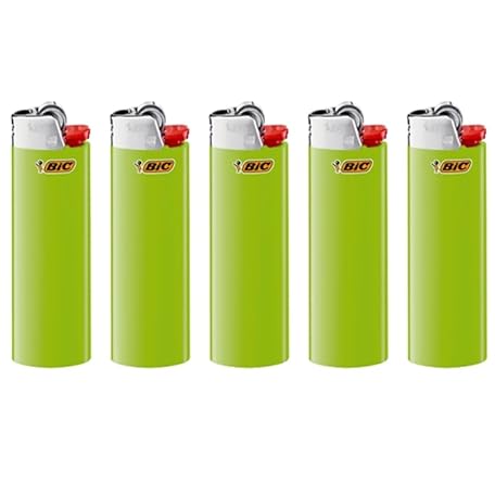 J26 Maxi Original Lighter (Plain/Mixed) with Child Lock - Stand & Stand (Green, Pack of 5)