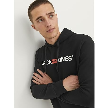 JACK & JONES Men's Hoodie Pullover with Hood, Sweatshirt Hoodie for Men, Made of Cotton with Logo/Choice of Designs and Colours