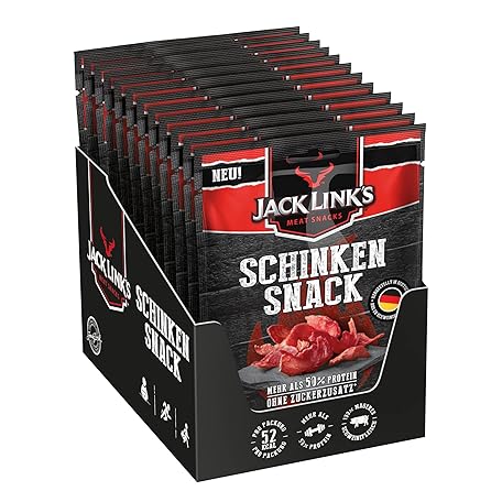 Sản phẩm Jack Link's Ham Snack - Pack of 12 (12 x 25 g) - Protein-Rich Meat Snack Made of Pork - High Protein Snack for Gym, Fitness, Outdoor - Hearty Dried Meat from Germany đang được bán với giá ưu đãi là $30.5527 tại nước Đức.