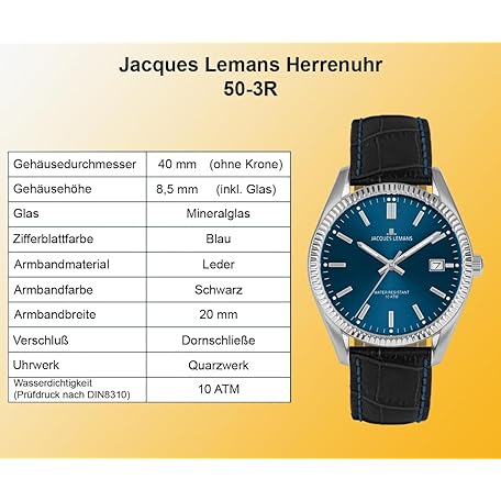 Sản phẩm JACQUES LEMANS Men's Watch 'Anniversary Collection 50 Years' Derby 40 mm 10 ATM Date with Leather Strap 50-3 in Various Designs đang được bán với giá ưu đãi là $113.5889 tại nước Đức.