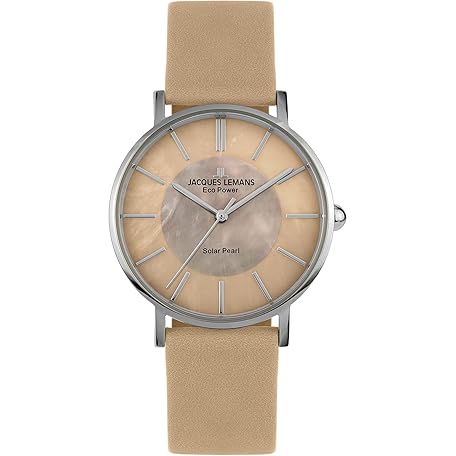 Thông tin sản phẩm JACQUES LEMANS Women's watches, Eco Power watches women made of solid stainless steel with leather strap and mother of pearl, model 1-2112