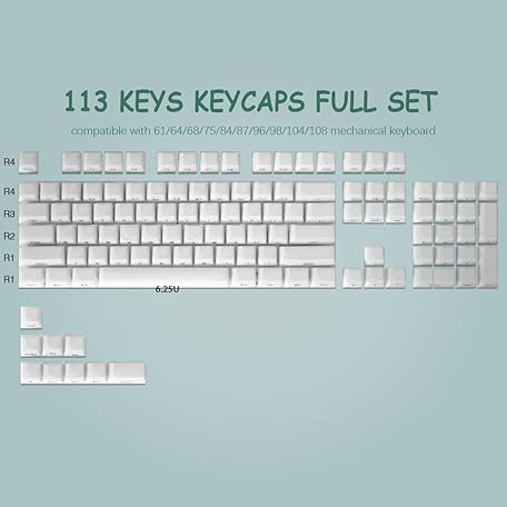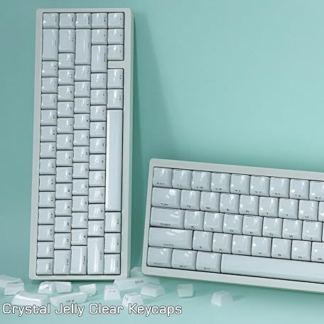 Thông tin sản phẩm JakeTsai Crystal Jelly Keycaps, PBT Keycap 113 Keys, OEM Profile Double Shot White Translucent Side Printed Custom Keycaps for Cherry MX Switch ASIN/ISO Layout Mechanical Keyboard