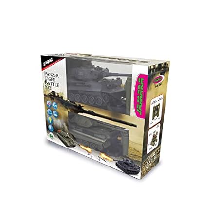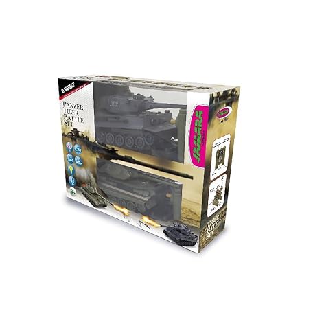 Thông tin sản phẩm JAMARA Panzer Tiger Battle Set 2,4 GHz - Battlemodus mit simulierter Schadensanzeige (Antriebsausfall, Kampf- und Fahrunfähig), extrem wendig, Geschützfeuer, Maschinengewehrfeuer