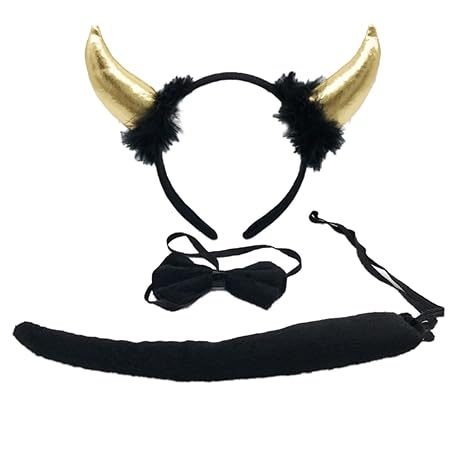 JAMNGHB Halloween Teufelskostüm inklusive Horn Stirnband Fliege Schwanz Dämonen Dress Up Outfit Cosplays Party Requisiten Teufel Kostüm inklusive Horn Stirnband Fliege Schwanz Dämonen Dress Up Outfit