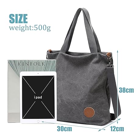 Thông tin sản phẩm JANSBEN Women's Canvas Handbag, Shoulder Bag, Casual, Multifunctional Shoulder Bags, Large, for Work, School, Shopping, Casual and Daily Use, gray, Casual