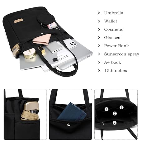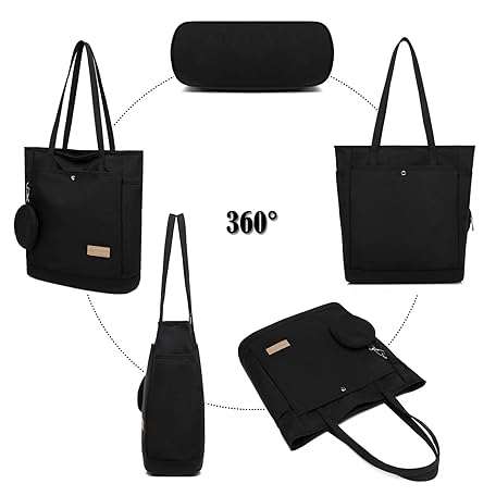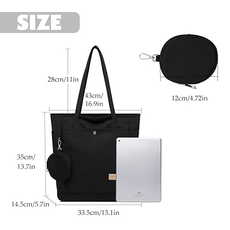 Thông tin sản phẩm JANSBEN Women's Shopper Bag with Change Purse, Canvas Shoulder Bag with Zip, Large Handbag Fabric Shopping Toto Bag for Work and School on the Go, black, Shopper