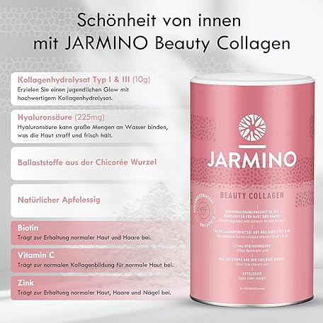 Sản phẩm JARMINO Collagen Peptides with Hyaluronic Acid, Collagen Powder with Vitamin C, Biotin, Zinc, Collagen Hydrolysate, Collagen Powder for Radiant Skin, Healthy Hair and Strong Nails, 450 g đang được bán với giá ưu đãi là $46.9681 tại nước Đức.