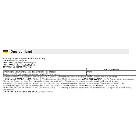 Sản phẩm Jarrow Formulas - Lutein 20 mg | Eye and Skin Health - 60 Softgels đang được bán với giá ưu đãi là $34.335 tại nước Đức.