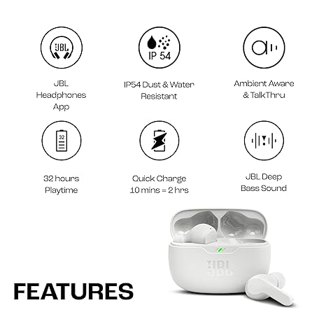 Thương hiệu JBL là cái tên nổi tiếng được rất nhiều khách hàng trên thế giới chọn lựa. Với kiểu dáng đẹp mắt, sang trọng, sản phẩm JBL Wave Beam Wireless In-Ear Earbuds with IP54 and IPX2 Waterproof - Hands-Free Calling and 32 Hours Battery Life - White là sự lựa chọn hoàn hảo nếu bạn đang tìm mua một món cho riêng mình.
