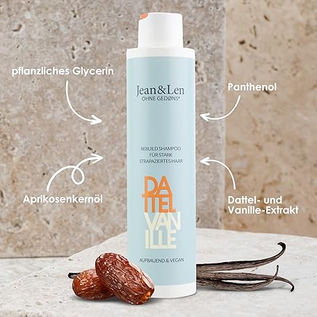 Sản phẩm Jean & Len Rebuild Shampoo Date & Vanilla, for Heavily Damaged Hair, Makes Hair Look Stronger and Shiny with Vanilla Fragrance, Shampoo without Silicones & Parabens, Vegan, 300 ml đang được bán với giá ưu đãi là $5.45 tại nước Đức.