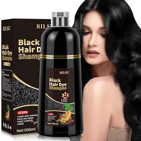 • JELMOK Black Hair Dye Shampoo 3in1, Sofort-Haarfarben-Shampoo für graues Haar, Schwarz, 500ML