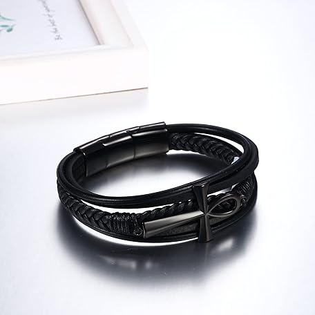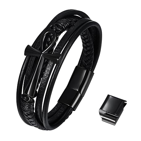 Thông tin sản phẩm JewelryWe Jewellery Men's Leather Bracelet with Engraving, Stainless Steel, Genuine Leather ID Bracelet, Handmade Braided Multilayer Bracelet Bangle Gold/Silver/Black