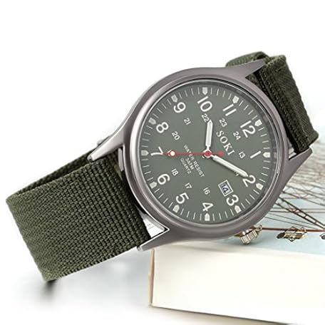 Sản phẩm JewelryWe Men's Wristwatch with Calendar and LED Light, Canvas Fabric Strap, Quartz Analogue Watch đang được bán với giá ưu đãi là $13.9084 tại nước Đức.