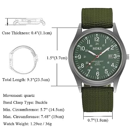 Thông tin sản phẩm JewelryWe Men's Wristwatch with Calendar and LED Light, Canvas Fabric Strap, Quartz Analogue Watch