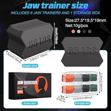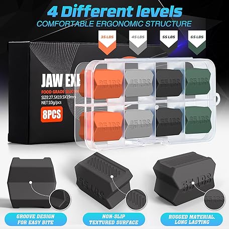 Thông tin sản phẩm jjshund Pack of 8 Silicone Jawline Trainer, Jaw Trainer with 4 Resistance Levels, Jawline Gum Jaw Exerciser for Men Women Jaw Design
