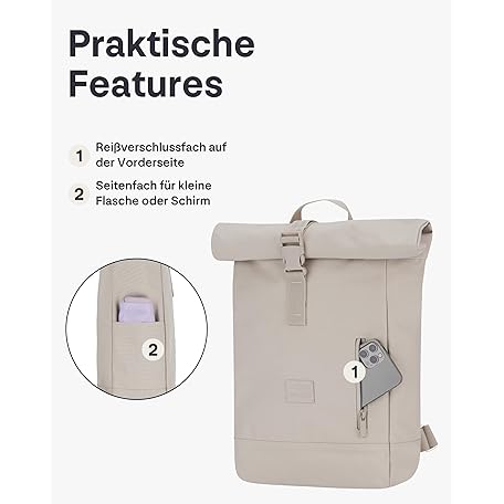 Thông tin sản phẩm Johnny Urban Robin Small Backpack for Men and Women, Small Rolltop Daypack with 12 Inch Laptop Compartment, Daypack for University, City, Business, Water-Repellent