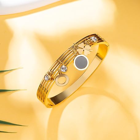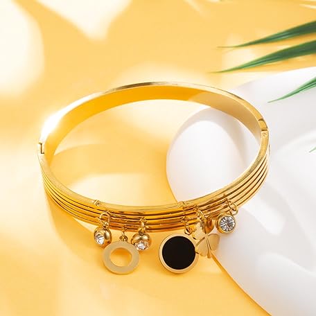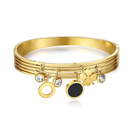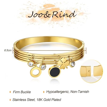 Thông tin sản phẩm Joo&Rind Bangle Gold 18k Gold-Plated Charm Bracelet Women's Clover Bracelet with Zirconia Bracelets Women's Stainless Steel Wrap Bracelet Women, Gifts for Women (Clover Leaf with Zirconia)