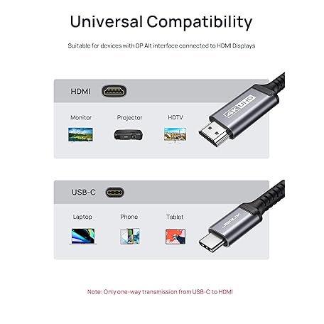 JSAUX USB C to HDMI Cable 5 m, USB Type C to HDMI 4K UHD Cable (Thunderbolt 3 Compatible) for MacBook Pro 2018/2017, MacBook Air/iPad Pro 2018, Samsung Galaxy S23/S10/S9, Surface Book 2 etc.