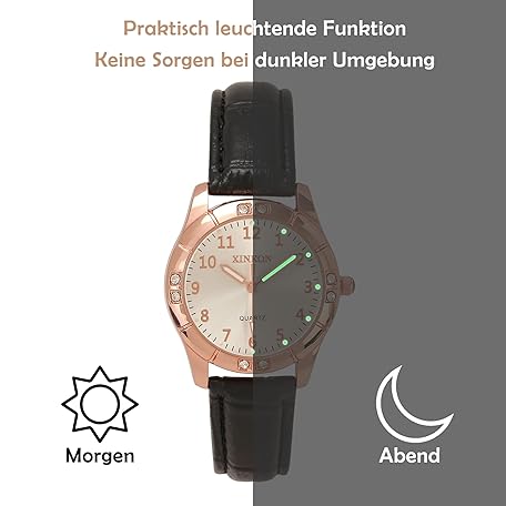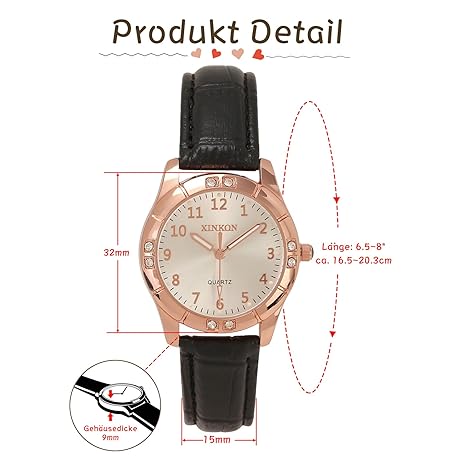 Thông tin sản phẩm JSDDE Women's Watch with Leather Strap, Analogue Quartz Watch, Luminous Arabic Numerals, Dress Watch for Women