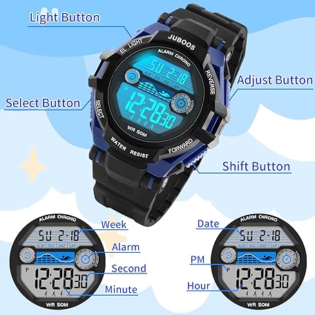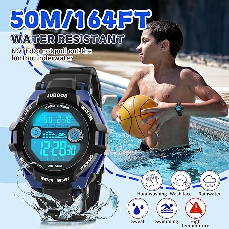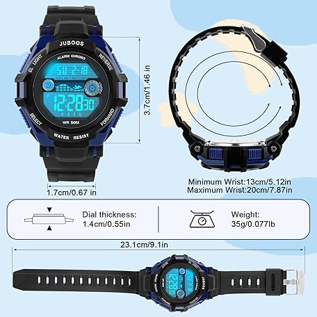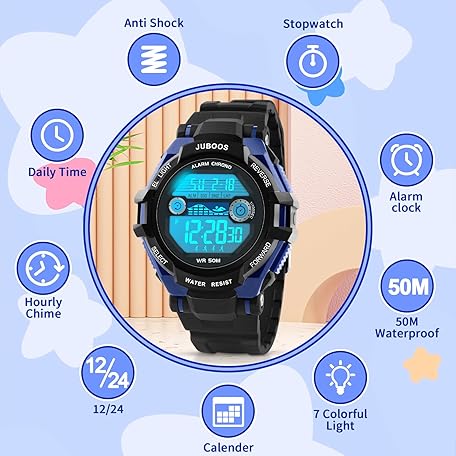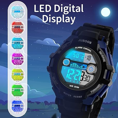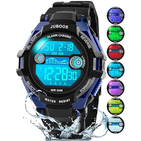 Thông tin sản phẩm Juboos Kinder Digitaluhren, 7 Farben LED-Licht, Wasserdicht, Alarm, Stoppuhr, Outdoor Armbanduhr für Kinder 5-16 Jahre