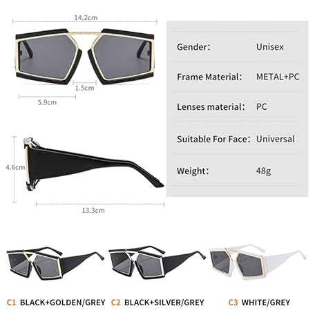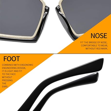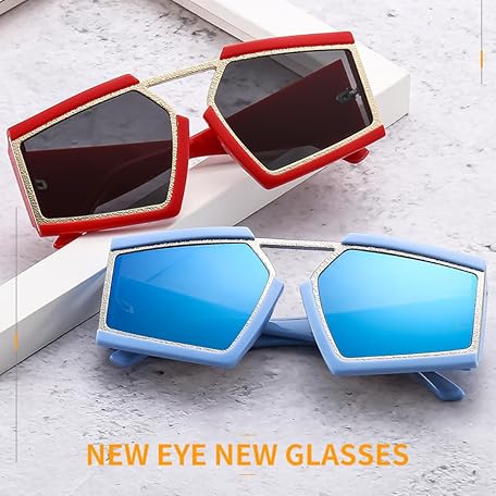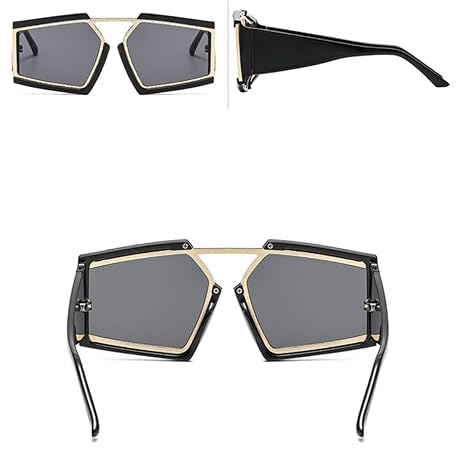 JUJNTNT Übergroße, rechteckige quadratische Sonnenbrille für Damen und Herren im Vintage-Stil mit verspiegelten Gläsern, UV400-Schutz