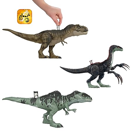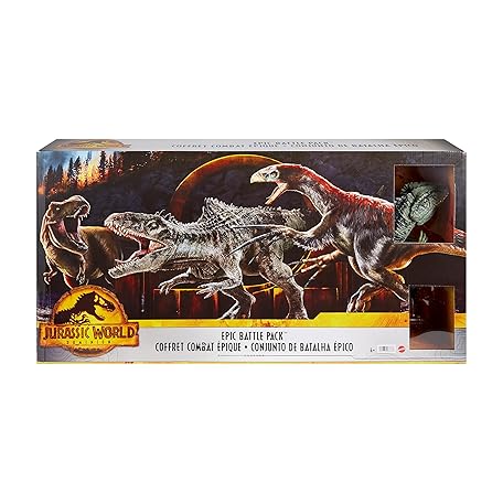 Thông tin sản phẩm Jurassic World HJK02 - Jurassic World: A New Age Epic Battle Pack, 3 Authentic Dinosaur Figures & 1 Human Figure, Physical and Digital Fun for Children from 4 Years