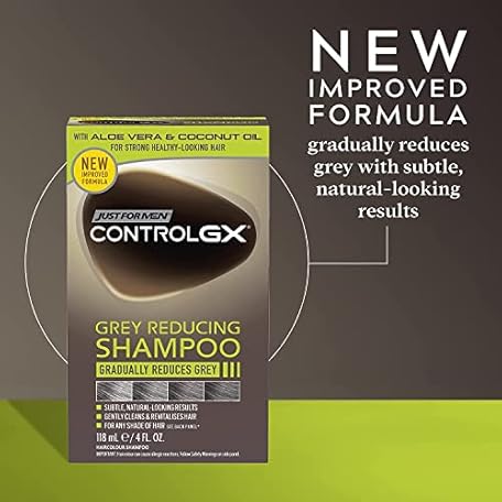 Thông tin sản phẩm Just For Men Control GX - Grey Reducing Shampoo for Grey Hair with Coconut Oil and Aloe Vera, New Improved Formula, All Shades, 118ml x 2 Units - Pack Promoo