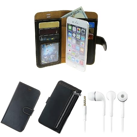 K-S-Trade Wallet Protective Case Compatible with Google Pixel 3a XL Black Faux Leather + Headphones Wallet Case Smartphone Case Full Wallet with Mobile Phone Protection