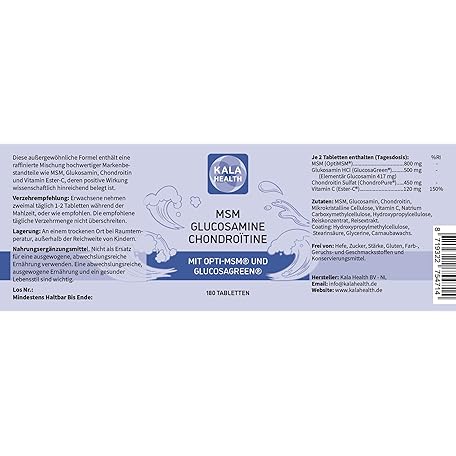 Sản phẩm Kala Health Glucosamin & Chondroitin Kapseln + Opti MSM hochdosiert Einzigartige Formel mit fünf hochwertigen Markeninhaltsstoffen - einzigartige Kombination von Inhaltsstoffen für Gelenke đang được bán với giá ưu đãi là $50.4234 tại nước Đức.