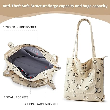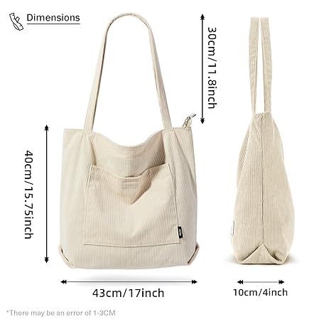 Thông tin sản phẩm Kalidi Cord Bag, Women's Shoulder Bag with Zip, Waterproof Tote Bag with Pocket Compartment, Large Shopper Bag, Handbag, Shoulder Bags for Work, Office, Travel, Shopping, School