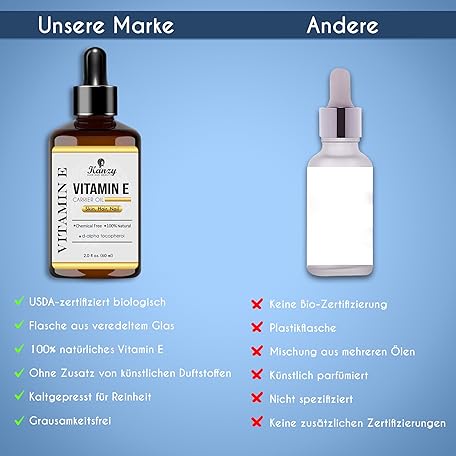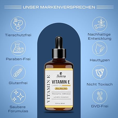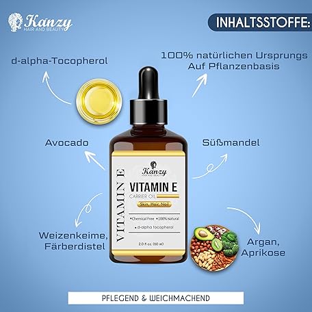 Sản phẩm Kanzy Vitamin E Oil Organic Drops for Cosmetics 60 ml 100% Natural d-Alpha Tocopherol, Anti-Wrinkle, Anti Ageing, Pure Vitamin E Oil Against Wrinkles of All Kinds, Face, Nail and Hair đang được bán với giá ưu đãi là $12.6985 tại nước Đức.