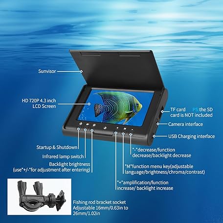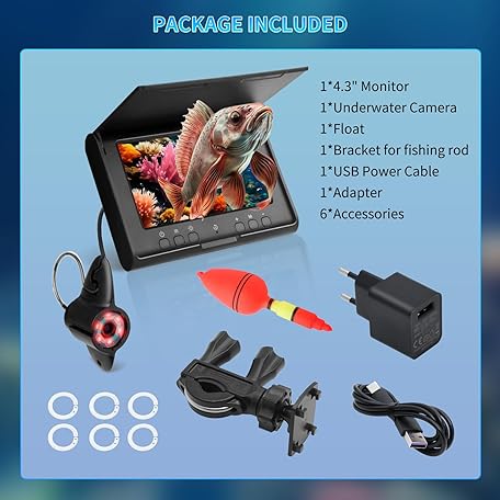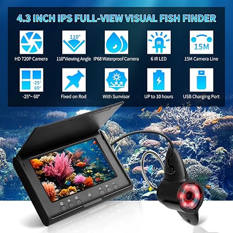 Thông tin sản phẩm KAOLALI Fish Finder, Underwater Camera Fishing with 4.3 Inch IPS Display, 5000 mAh Battery, 15 m Cable, IP68 Waterproof Fish Finder Camera, for Sea Fishing, River Fishing, Ice Fishing