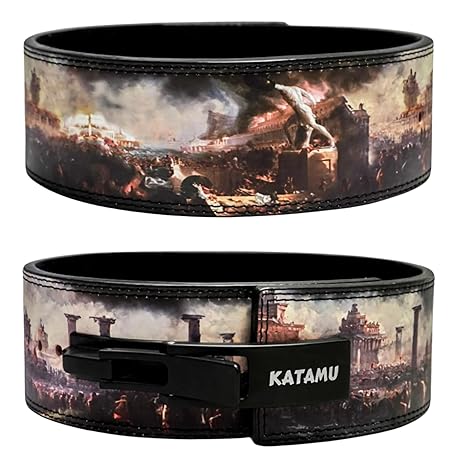 Katamu Premium Lever Gewichthebergürtel | Gym Belt | Powerlifting Belt | Leder Gewichthebergürtel mit Hebel (Fall of Rome, Medium)