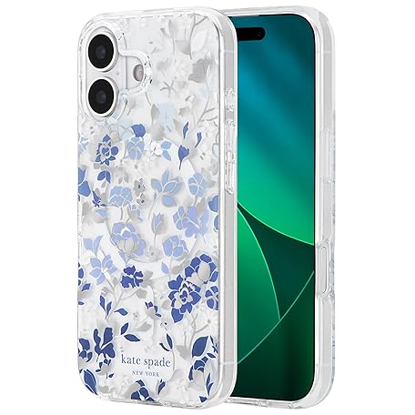 Kate Spade New York iPhone 17 Hülle – Kompatibel mit MagSafe – Designer-Handyhülle – Blumenbeet Blaue Edelsteine
