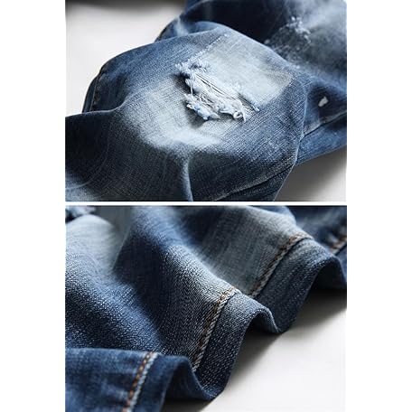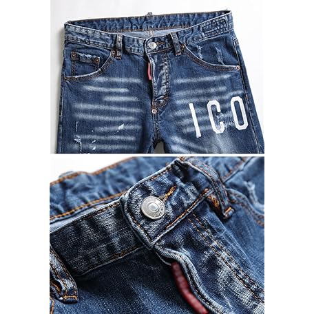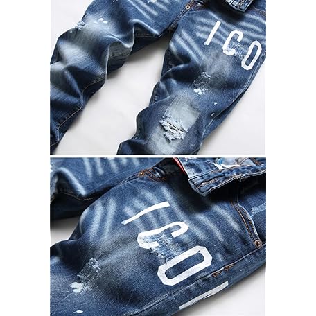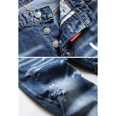 Thông tin sản phẩm Kdtoll Men's Jeans, Y2K Slim Fit Stretch Trousers with Ripped and Ink Spot Design, Ripped Destroyed Jeans in Hip Hop Cowboy Style, Regular Straight Fit, Fashionable and Versatile for Streetwear