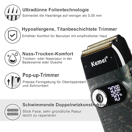 Sản phẩm KEMEI Foil Shaver for Men, Electric Shaver with Bald Shaving, Cordless Electric Shaver with LED Display, Gifts for Father's Day đang được bán với giá ưu đãi là $45.6819 tại nước Đức.