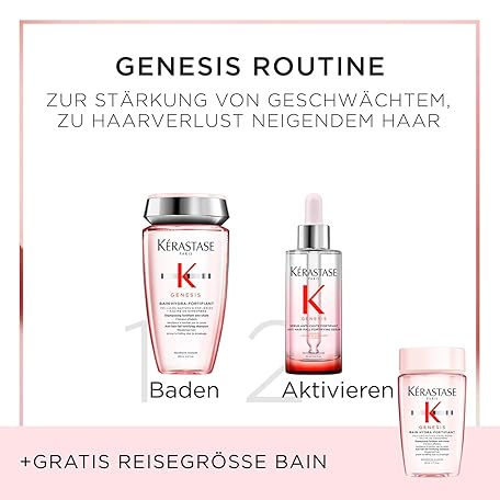 Thông tin sản phẩm Kérastase, Genesis, Care Routine with Shampoo (Normal Size and Free Sample Size 80 ml) and Strengthening Hair Treatment, For Fine and Brittle Hair, Against Hair Loss and Hair Breakage