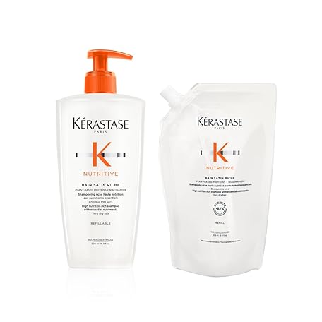 Kérastase Nutritive Bain Satin Riche Refill Kit, Moisturising Hair Bath for Very Dry Hair, Contains: Nutritive Bain Satin Riche 500ml Pump Dispenser and 500ml Refill
