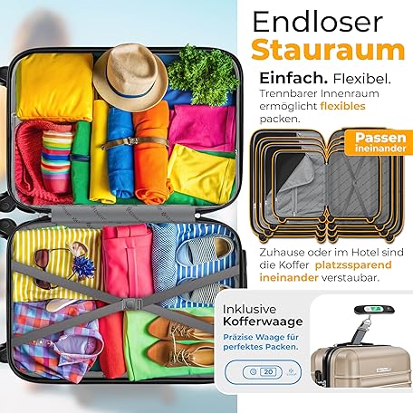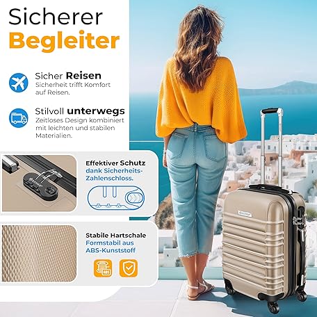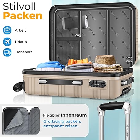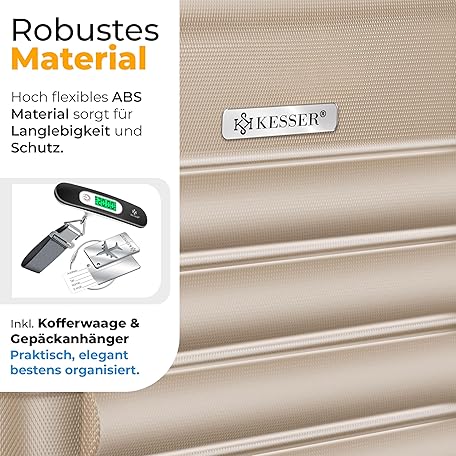 Thông tin sản phẩm KESSER® 4tlg. Hartschalenkofferset Hartschalenkoffer Reisekoffer Set Reisekofferset Trolley Koffer 4 Rollen ABS-Hartschale Teleskopgriff Inkl. Kofferwaage + Gepäckanhänger Rollkoffer Schloss, S-M-L-XL