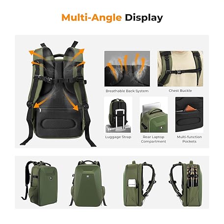 K&F Concept Camera Backpack, Photo Backpack with Hard Shell Camera Bag with 15.6 Inch Laptop Compartment and Rain Cover, Backpack for Drones