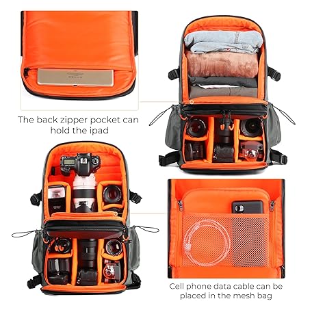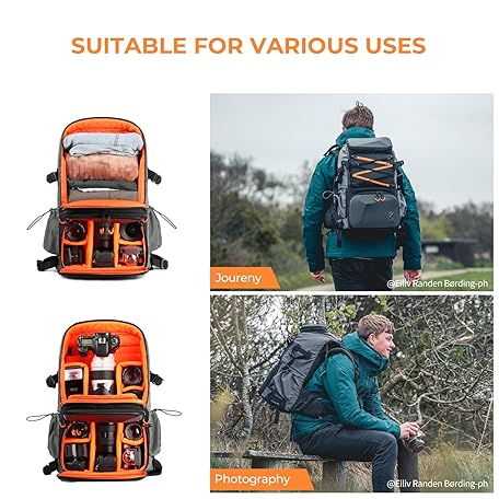 Thông tin sản phẩm K&F CONCEPT Camera Backpacks for Photographers, Giant Travel Bag, 32L, Large Camera Bags with Laptop Compartment and Waterproof Rain Cover