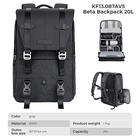 Thông tin sản phẩm K&F CONCEPT Kamerarucksäcke 20L, Große Camera Backpack 15,6 Zoll Laptopfach, Spritzwassergeschutzt Fotorucksack mit Regenschutz, Kameratasche Groß für DSLR SLR