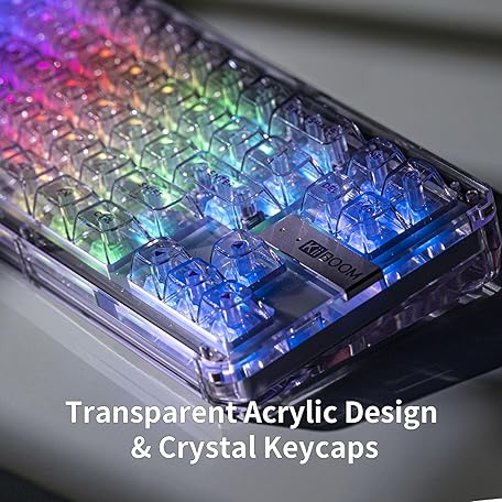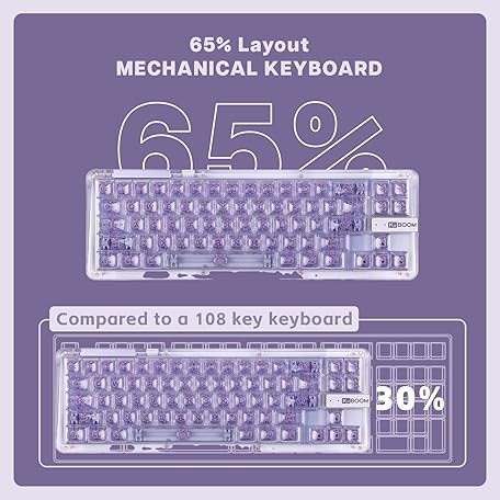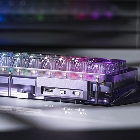Thông tin sản phẩm KiiBoom Phantom 68 65% Hot Swappable Crystal Gasket-Mounted Mechanical Keyboard, BT5.0/2.4GHz/USB-C Wireless NKRO Gaming Keyboard with South-Facing RGB, 4000mAh Battery for Win/Mac (Purple)