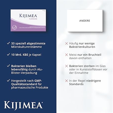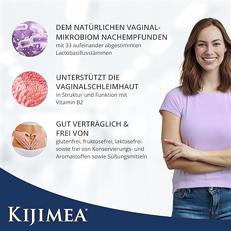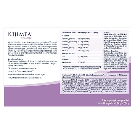 Thông tin sản phẩm Kijimea FloraCare - Modeled on the Natural Vaginal Microbiome, 33 Specially Matched Lactic Acid Bacteria for the Vagina in High Dosage + Vitamin B2, B3, B7 and Zinc - Pack of 28