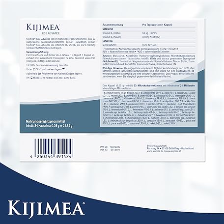 Thương hiệu Kijimea là cái tên nổi tiếng được rất nhiều khách hàng trên thế giới chọn lựa. Với kiểu dáng đẹp mắt, sang trọng, sản phẩm Kijimea K53 Advance - Intestinal Bacteria High Dose | 53 Selected Bacteria Strains from the Intestinal Flora | With Biotin | 500 Billion CFU per Pack | Lactose Free | Gluten Free - 84 Capsules là sự lựa chọn hoàn hảo nếu bạn đang tìm mua một món cho riêng mình.