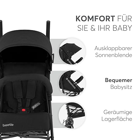 Thông tin sản phẩm KikkaBoo BEETLE Kinderwagen, Kinderwagen bis 22 kg, faltbar, leicht, kompakt, Schwarz