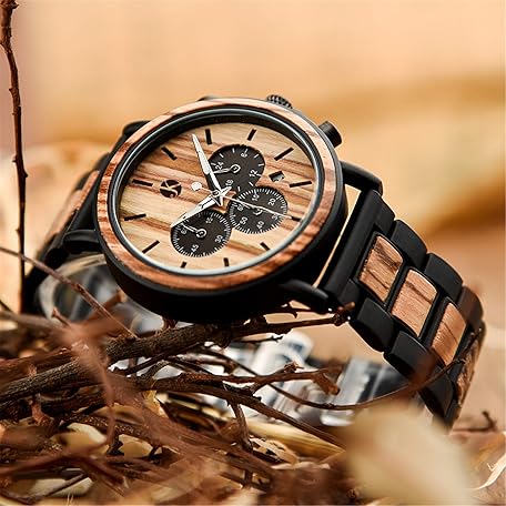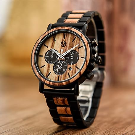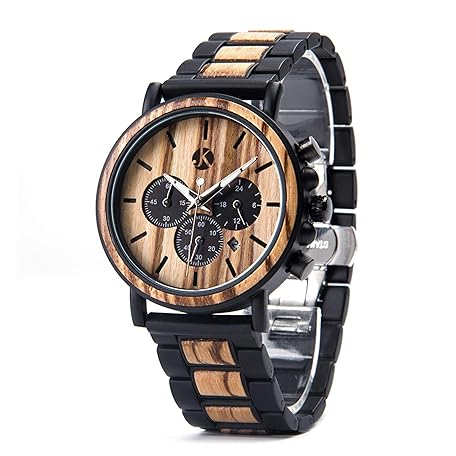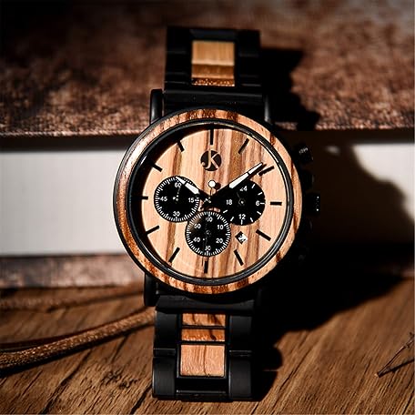Sản phẩm Kim Johanson Men's Military* Wooden Stainless Steel Watch in Light Brown Chronograph with Stopwatch and Link Bracelet Handmade Quartz Analogue Watch with Gift Box, brown, Bracelet đang được bán với giá ưu đãi là $88.7805 tại nước Đức.